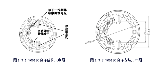 探測器的安裝與拆卸方法、探測器防丟失功能的啟動等操作與V6611A型探測器底座相同。