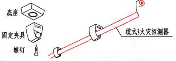 線型感溫火災(zāi)探測(cè)器在頂部安裝時(shí),可采用帶底座的卡具、掛鉤等固定。