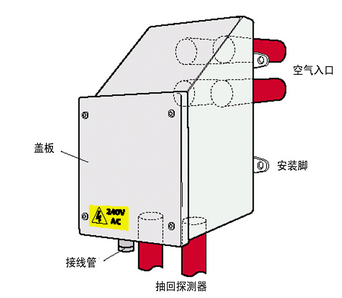 為監(jiān)控加熱器的工作情況,提供了一套溫度自動調(diào)節(jié)裝置,監(jiān)控離開空氣采樣扇的空氣溫度。如果加熱器沒有工作,溫度自動調(diào)節(jié)裝置的觸點閉合并發(fā)出一般故障信號。當(dāng)GST空氣采樣式感煙火災(zāi)探測報警器與模擬編碼火災(zāi)自動報警系統(tǒng)連接時,可利用消防模塊(監(jiān)視模塊)進(jìn)行故障報警。