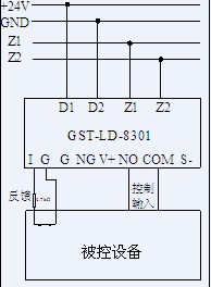 GST-LD-8301輸入輸出模塊現(xiàn)場(chǎng)接線模擬圖: