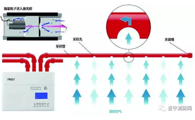其工作原理在于通過分布在被保護(hù)區(qū)域內(nèi)的采集管網(wǎng)采集空氣樣品,經(jīng)過一個特殊的過濾裝置濾掉灰塵后送至一個特制激光探測器。空氣樣品在探測器中經(jīng)過分析,將空氣中燃燒產(chǎn)生的微粒加以測定,由此給出準(zhǔn)確的煙霧濃度值,并根據(jù)使用者事先設(shè)定的報警煙霧濃度值發(fā)出火災(zāi)報警。而此次全新上市的FMST-FXV(E)系列則在技術(shù)性能上全面升級。